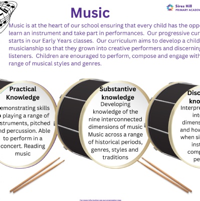 At Sires Hill  Primary Academy we want to ensure that every child has access to high-quality, practical and engaging music experiences during class lessons and whole school/key stage experiences, along with a rich offering of wider opportunities.