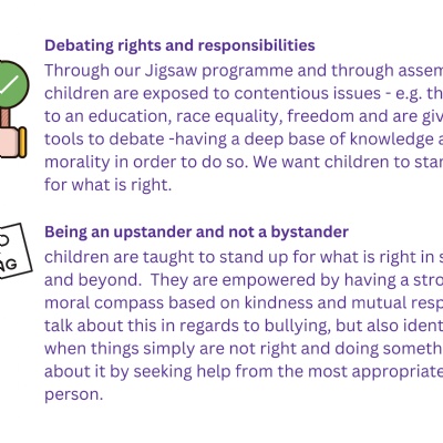 Personal Development forms a vital part of our wider curriculum.  This takes many forms: trips and experiences, directly taught curriculum and our whole school club offer.  Personal development is planned around the Trust's four values in addition to the core curriculum of RE and PSHE.