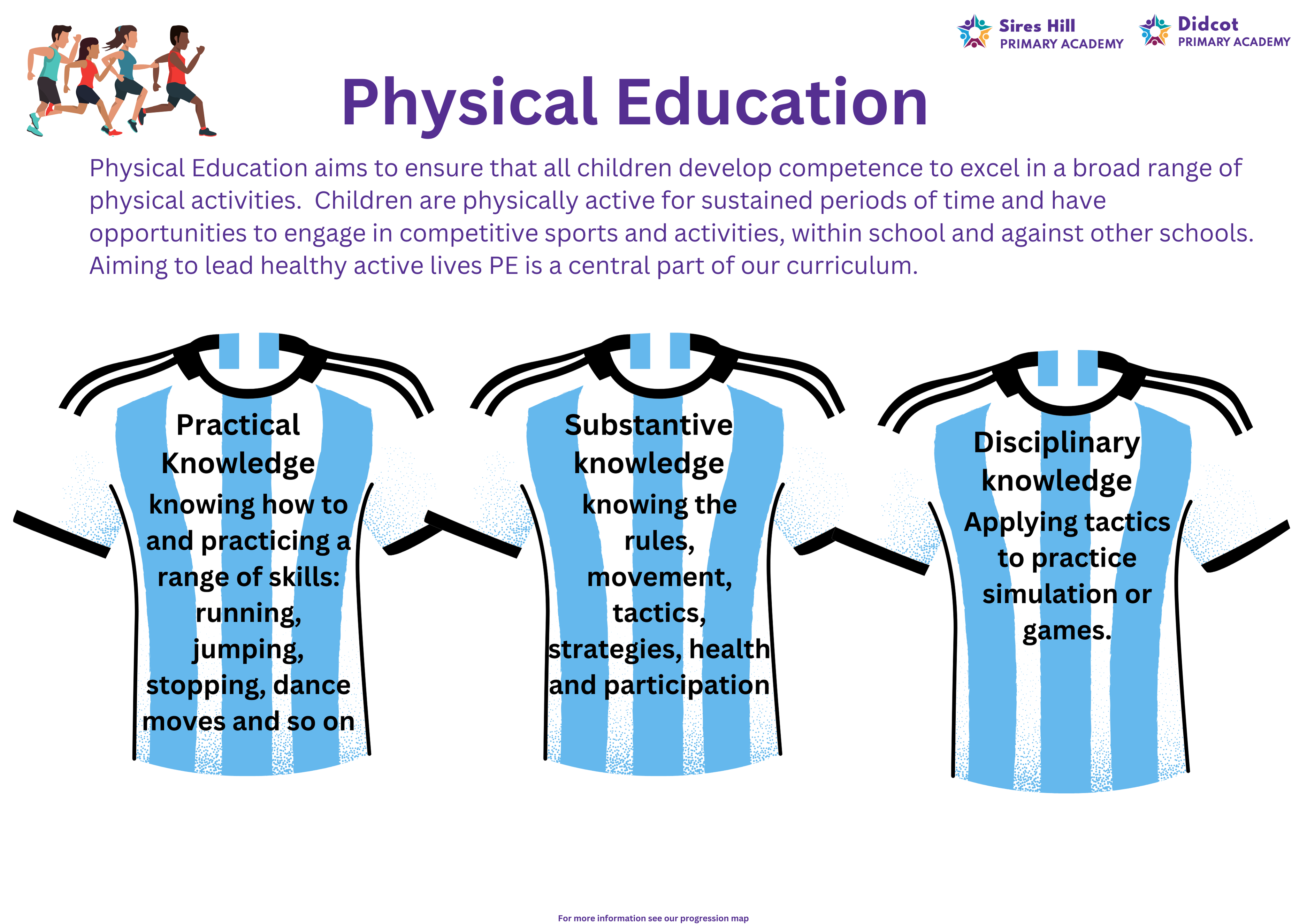 Here at Sires Hill Primary Academy, we strive to give all of our pupils high quality PE lessons which accommodates all needs and abilities. Our lessons are structured following the high quality PE schemes of work provided by the PE Hub who are partnered with the Association for Physical Education.